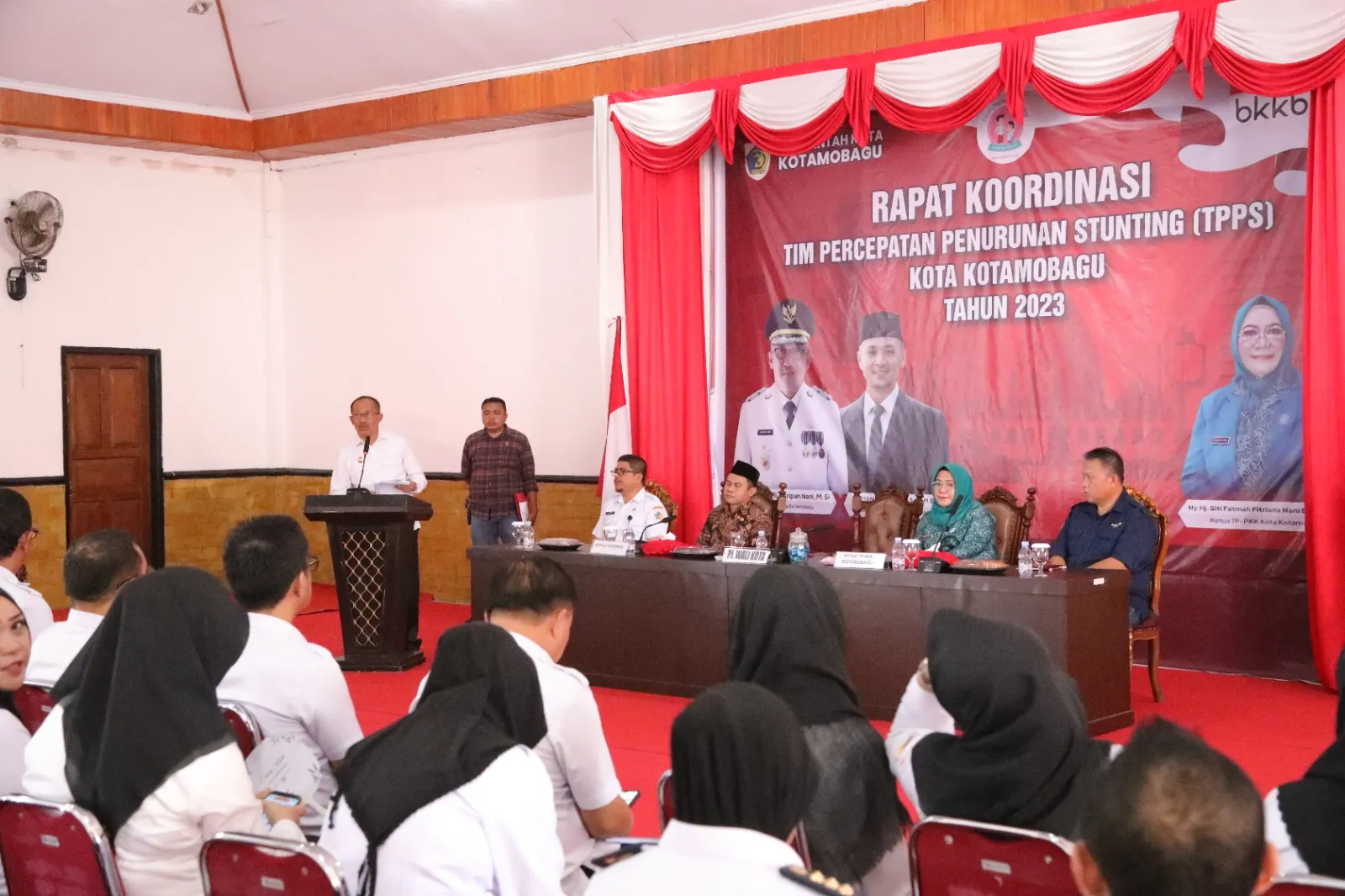 “Oleh karena itu Rapat Koordinasi pada hari ini diharapkan dapat menjadi upaya kita bersama dalam rangka menurunkan angka Stunting di Kota Kotamobagu, sehingga sebelum Tahun 2045 Kota Kotamobagu akan bebas Stunting