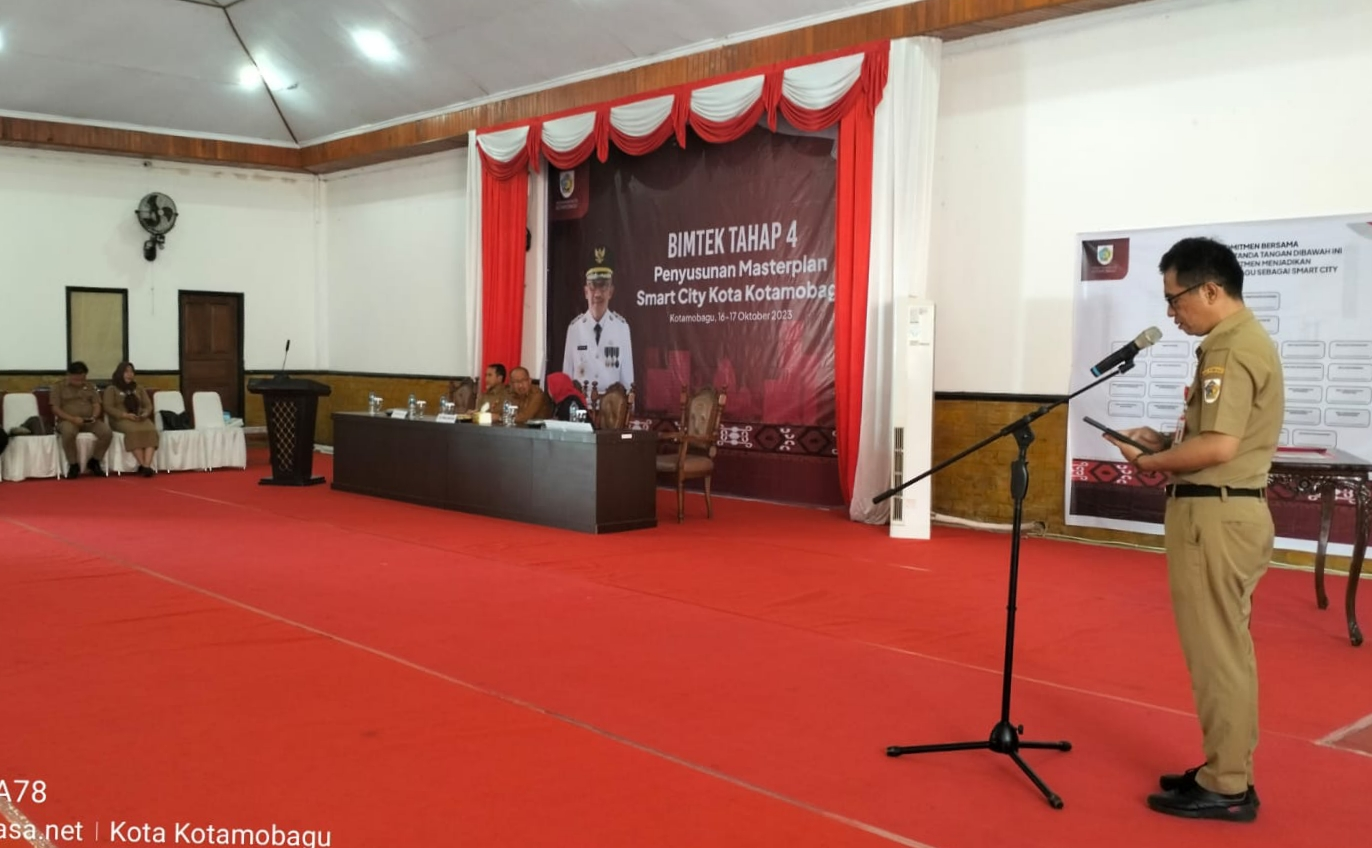 KOTAMOBAGU – Penjabat (Pj) Wali Kota Kotamobagu, Dr. Drs. Asripan Asripan Nani M.Si, Senin (16/10/2023), membuka secara resmi bimbingan teknis (Bimtek) Tahap IV Penyusunan Master Plan Smart City Kotamobagu, bertempat di Rudis Walikota Kotamobagu.