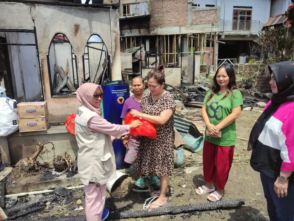 Bantuan kami serahkan kepada saudara kita keluarga Jerry Sanger warga Lorong Agoan Kelurahan Kotamobagu yang tertimpa musibah kebakaran dini hari tadi,” ucap Asrianty.