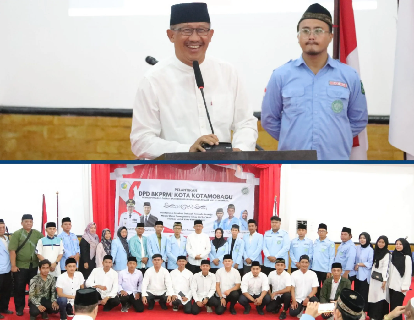 KOTAMOBAGU – Penjabat Wali Kota, Dr. Drs. Hi. Asripan Nani., M.Si Hadiri Pelantikan DPD Badan Komunikasi Pemuda Remaja Masjid Indonesia (BKPRMI) Kota Kotamobagu, pada hari Jumat, 1 Desember 2023, bertempat di Aula Rumah Dinas Wali Kota Kotamobagu.