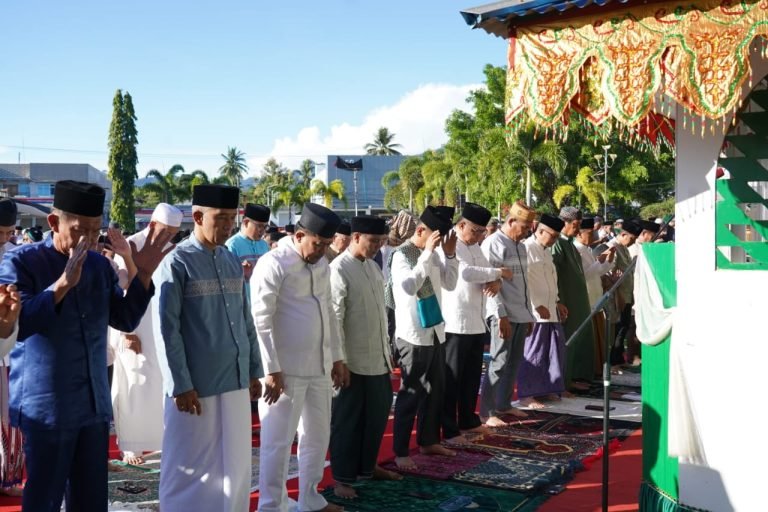 KILASMERDEKA, BOLMONG – Penjabat (Pj) Bupati Kabupaten Bolaang Mongondow (Bolmong), dr Jusnan C Mokoginta MARS melaksanakan Sholat Idul Adha 1445 Hijriah Perdana di lapangan olahraga Daagon, Lolak, Senin 17 Juni 2024.